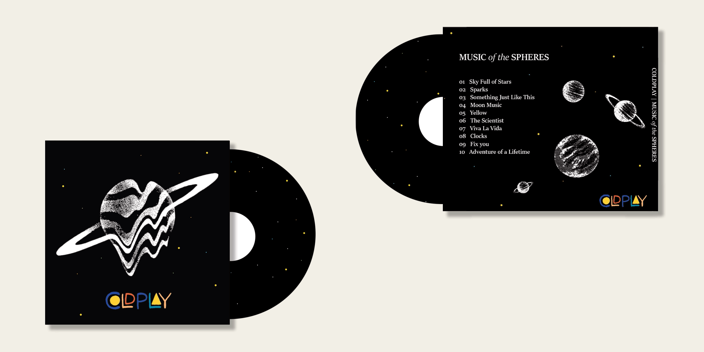 Redesigned album cover and CD, incorporating space imagery as depicted in Coldplay’s lyrics.